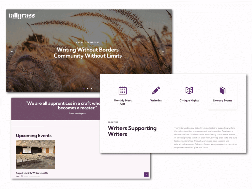 Author Brand & WebsiteBook Cover Art Author & Book Sign Tallgrass Literary Collective WebsiteWriterCon WebsiteAuthor Brand IdentityAuthor WebsiteAuthor Website, Book Cover, SignageAuthor Website & BrandAuthor WebsiteAuthor WebsiteBook Covers